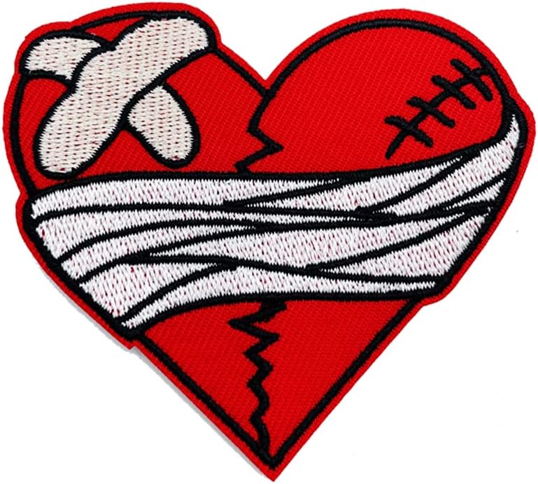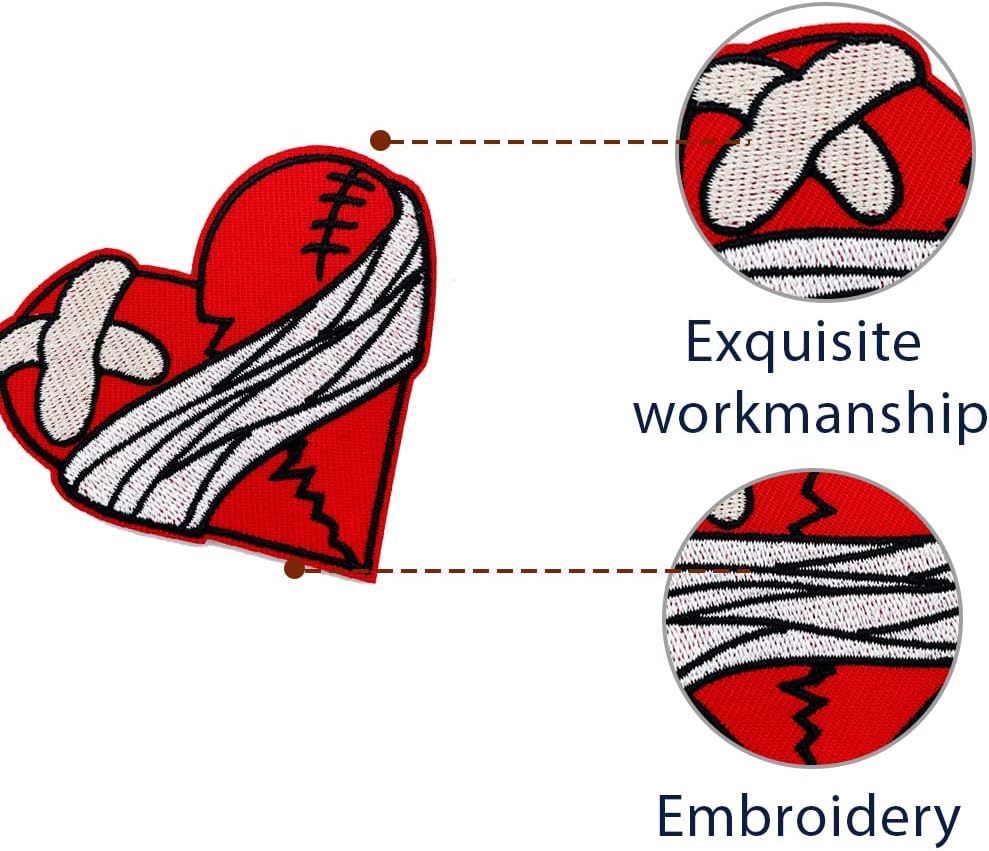 熨燙刺繡補丁 破碎的心 帶繃帶補丁 龐克搖滾徽章 刺繡徽章 摩托車裝飾 DIY 配件